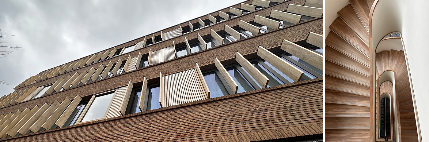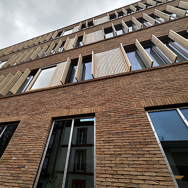 L’opération à la façade urbaine mêlant brique, bois et verre est composée d’un bâtiment tertiaire de 13 500 m² sur 4 niveaux de superstructure dont un attique en structure bois, et 2 niveaux de sous-sol, et des espaces de production d’articles de maroquinerie, destiné à recevoir des ateliers de coupe, des bureaux, laboratoires et un restaurant d’entreprise.